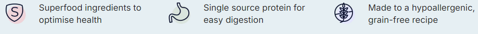Discover our new super indulgent treats that cater to specific health needs for your dog. In three delicious recipes, these hypoallergenic treats are packed with superfood ingredients, making them a healthy way to treat your dog.