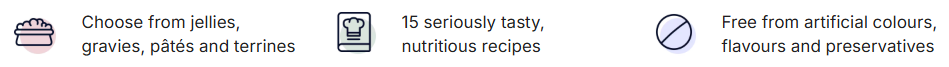 They’re slow-cooked, nutritious and made with succulent meat, fish and veggies, and free from any artificial colours or flavours.