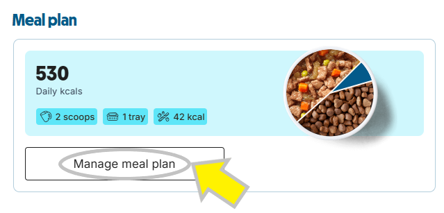 1. As above, you can access your dog's meal plan on your online Dashboard