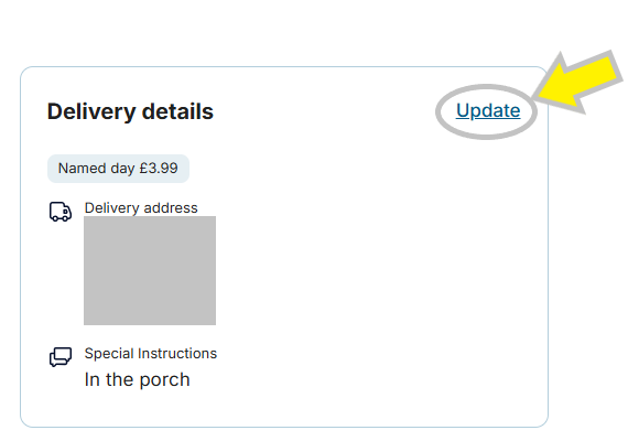 2. Under 'Delivery details' choose 'Update'