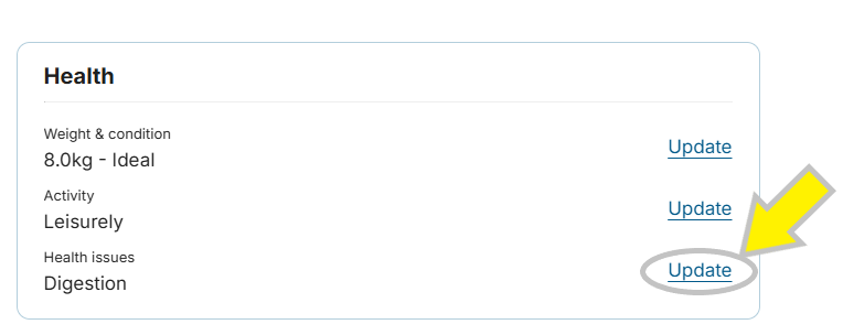 If your dog has been diagnosed with pancreatitis, just log in to your online Dashboard to add this as a health condition. Then follow the steps below: