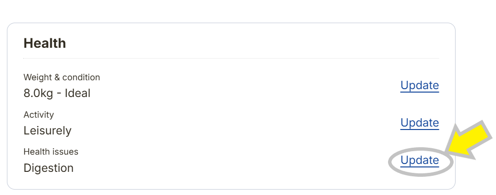 You can add a health issue on your dog's profile through your account very easily. It is vital to keep your dog’s profile update to date because this ensures their food provides exactly what they need for a happy, healthy life.