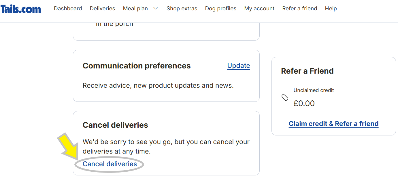Scroll down and click 'Cancel deliveries'