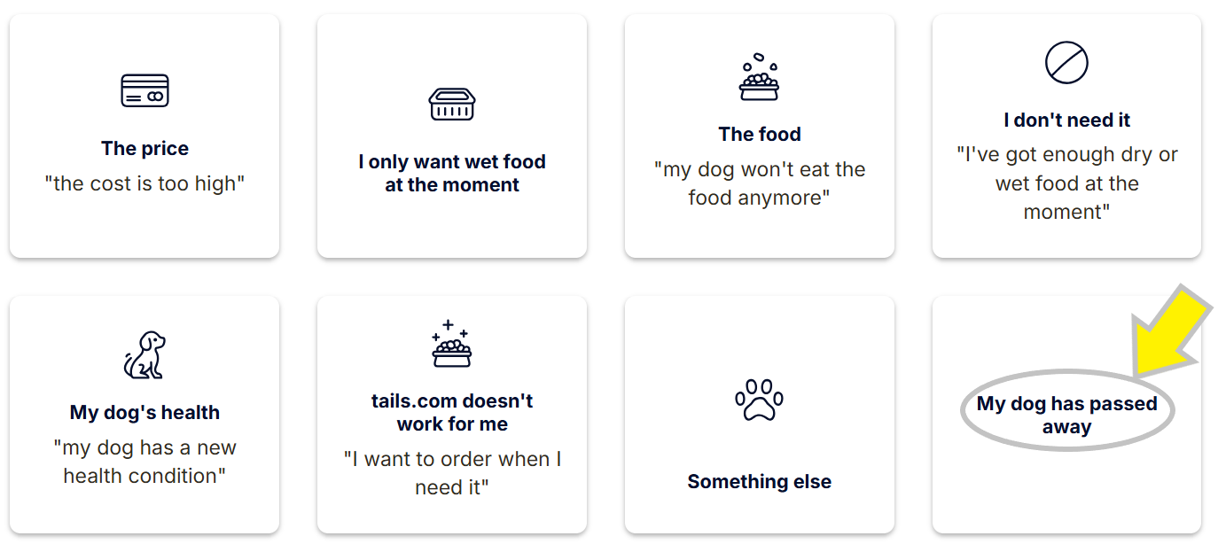 4. Then select the cancellation reason of 'My dog has passed away'